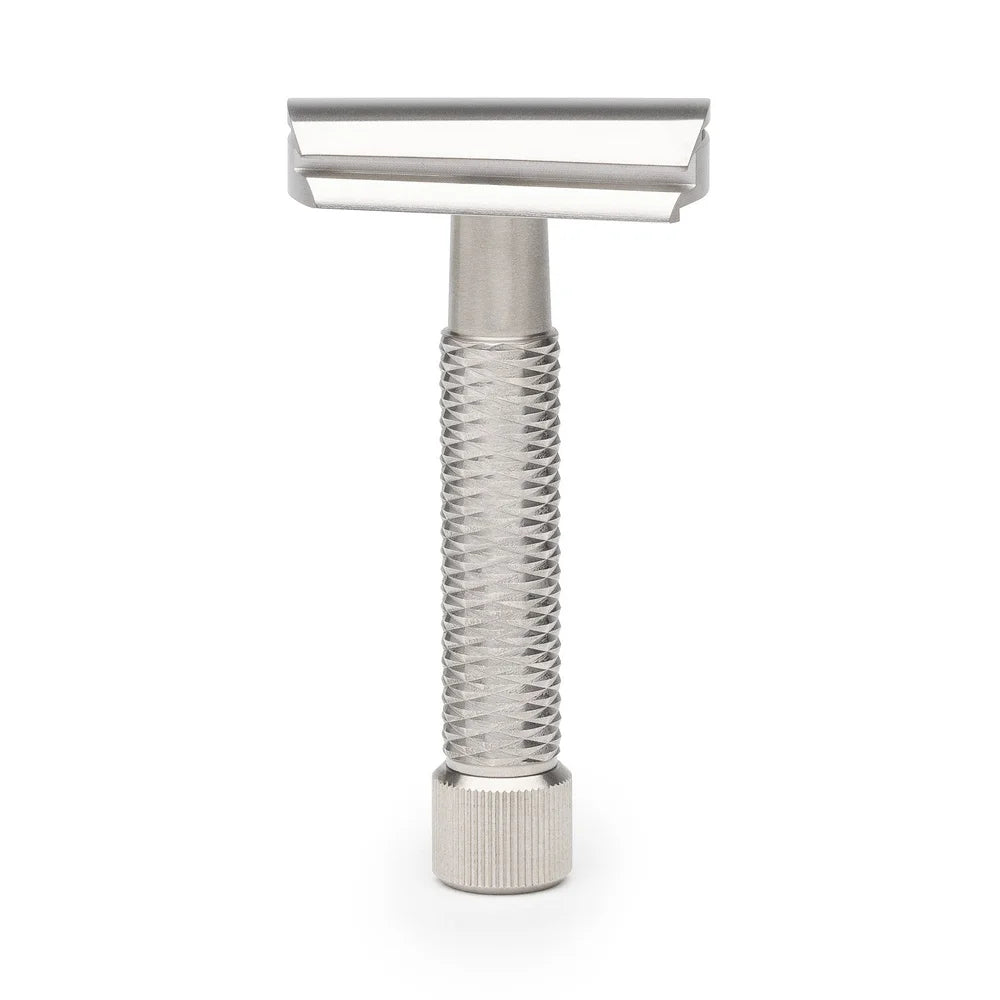 Una slant safety razor es una safety razor con una cabeza inclinada y torcida que ofrece una experiencia de afeitado extremadamente suave y cómoda. La cabeza está fijada al marco y no es ajustable. Esta navaja es perfecta para afeitar áreas difíciles como el cuello, la garganta y alrededor de la nariz.